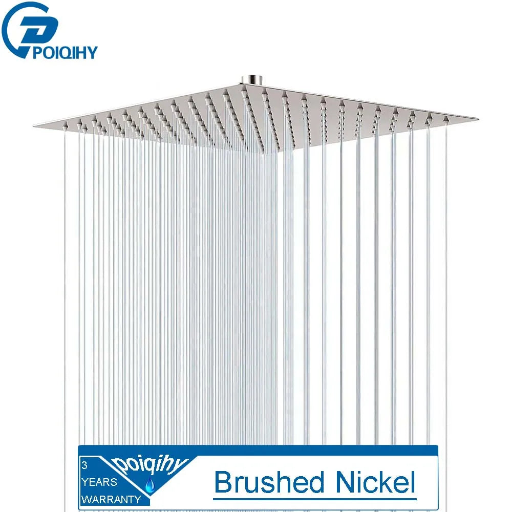 POIQIHY Ultrathin Golden Shower Head 16" Stainless Steel Rainfall Shower Faucet Head Bathroom Black Large Flow Showerhead Faucet